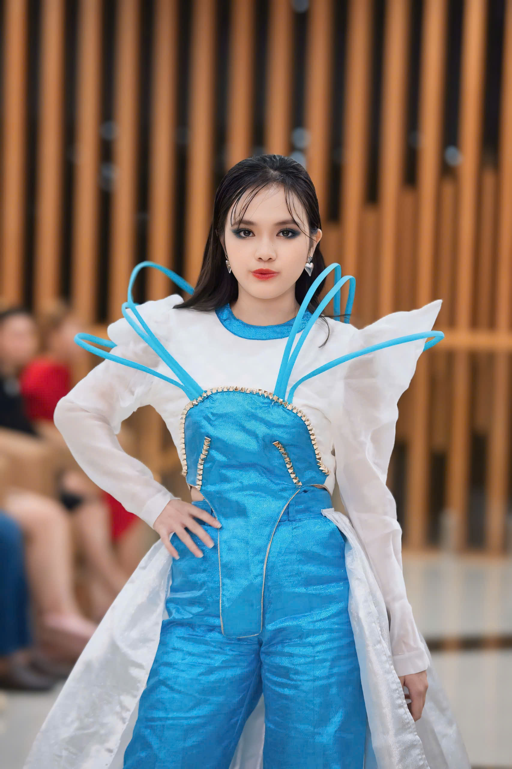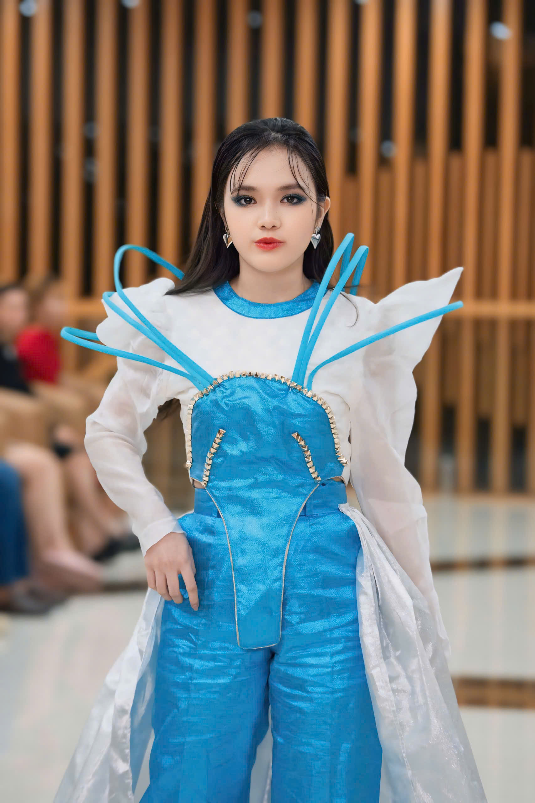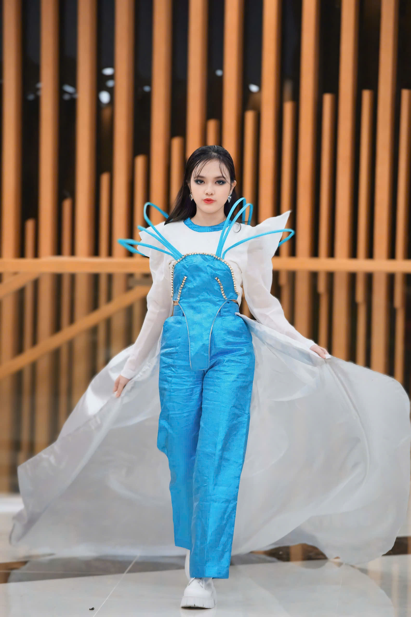 Trang phục dạ hội với chất liệu mềm mại, gam màu sắc bắt mắt hài hòa, được điểm xuyến bằng những họa tiết tinh tế và những đường cắt độc đáo, giúp Mai Trang trở thành tâm điểm của mọi ánh nhìn. Đinh Bách Đạt đã khéo léo kết hợp giữa sự hiện đại và sáng tạo trong thiết kế, tạo nên một sản phẩm không chỉ đẹp mắt mà còn mang chiều sâu thời trang vẻ đẹp tinh thần.