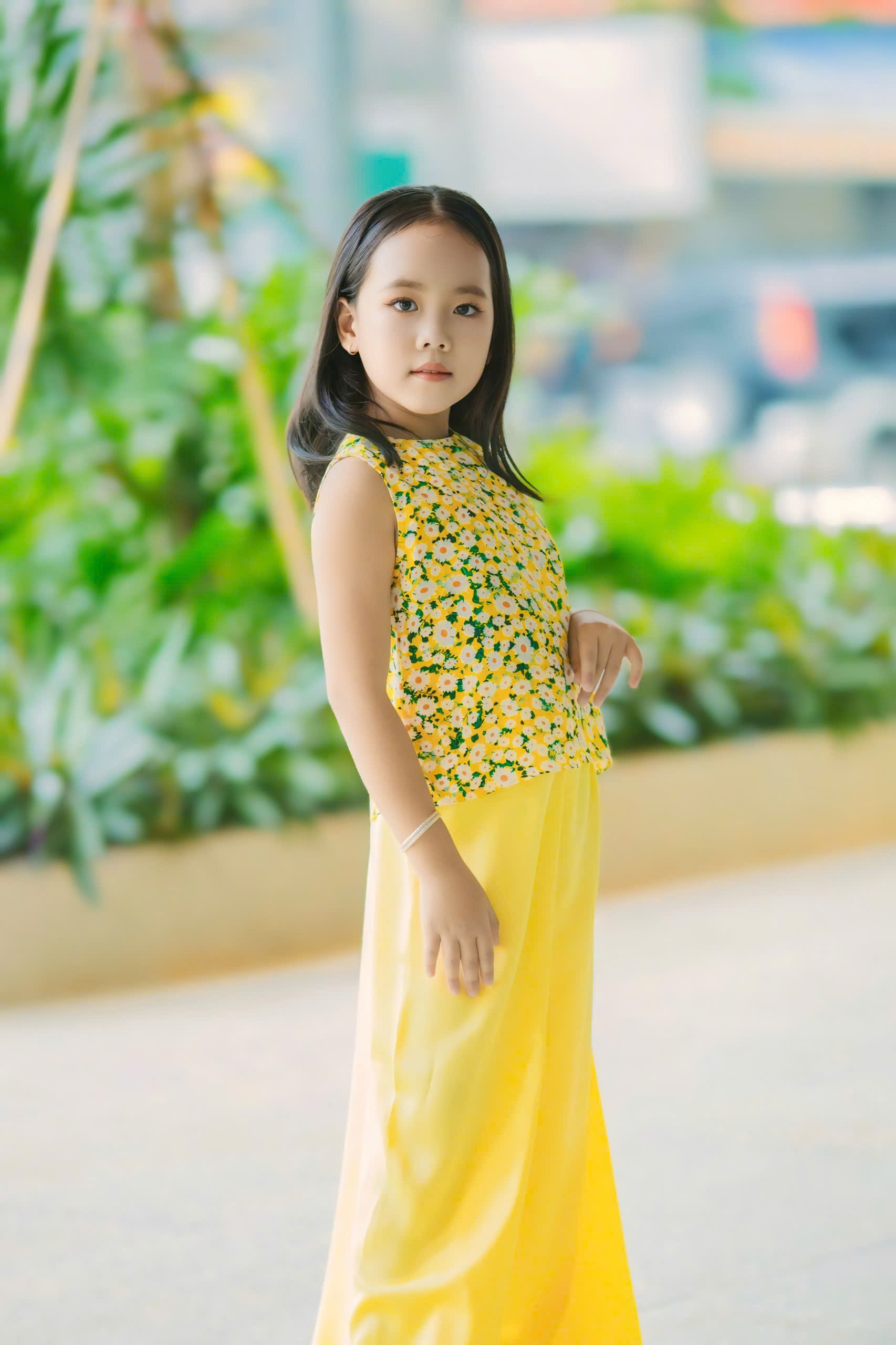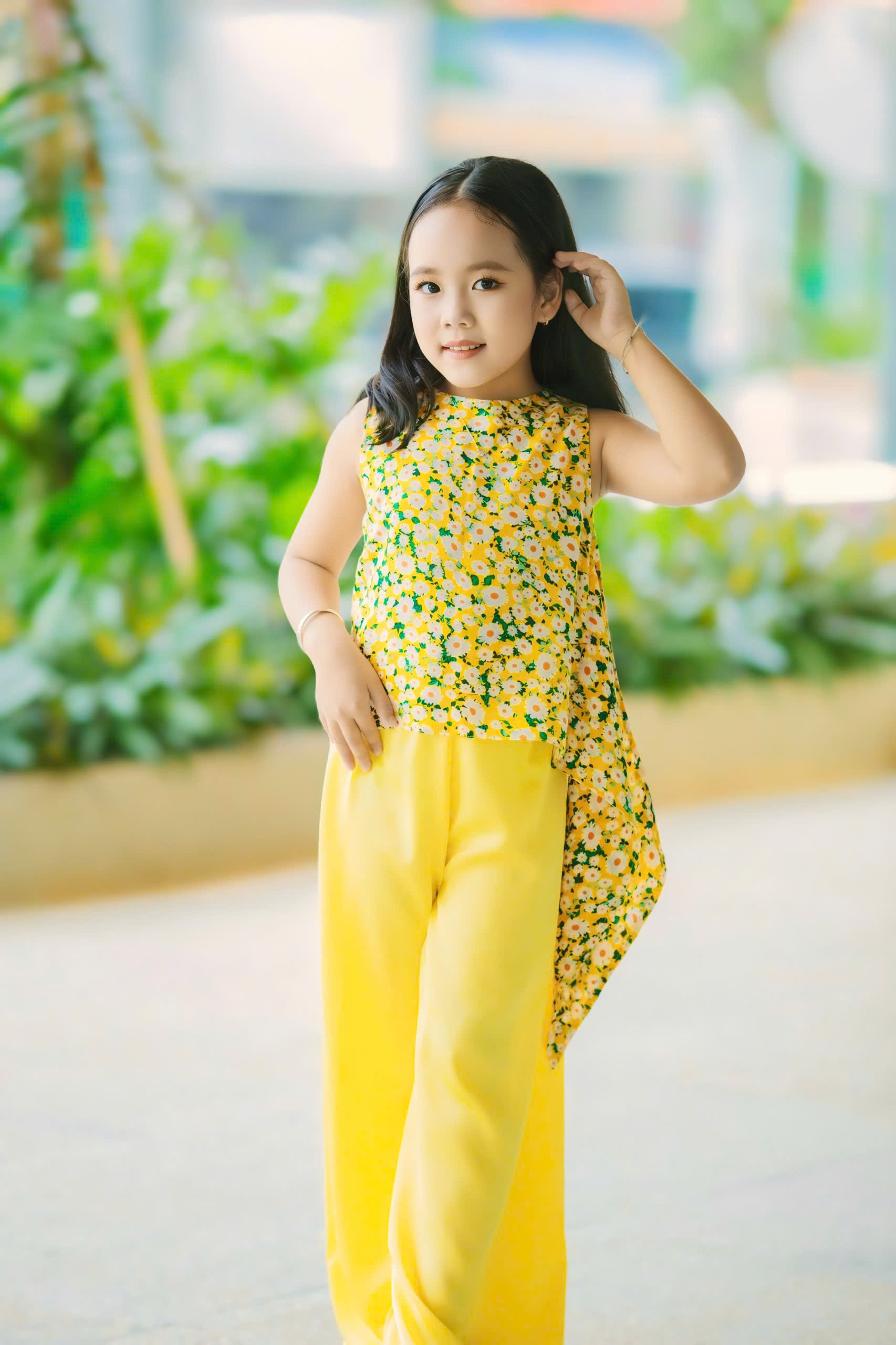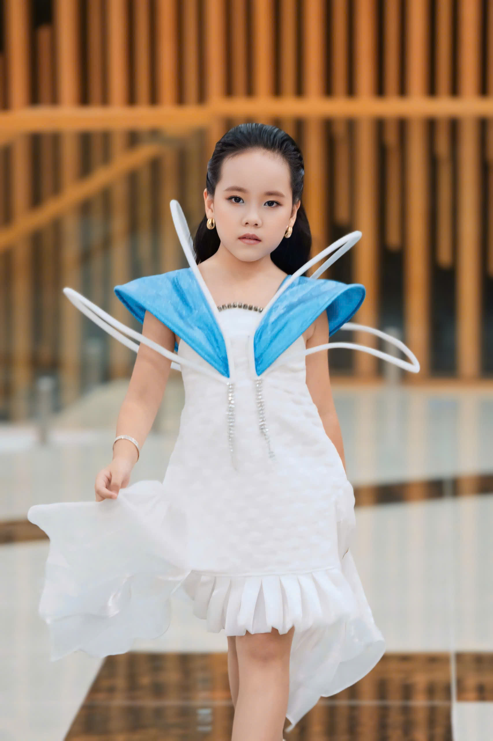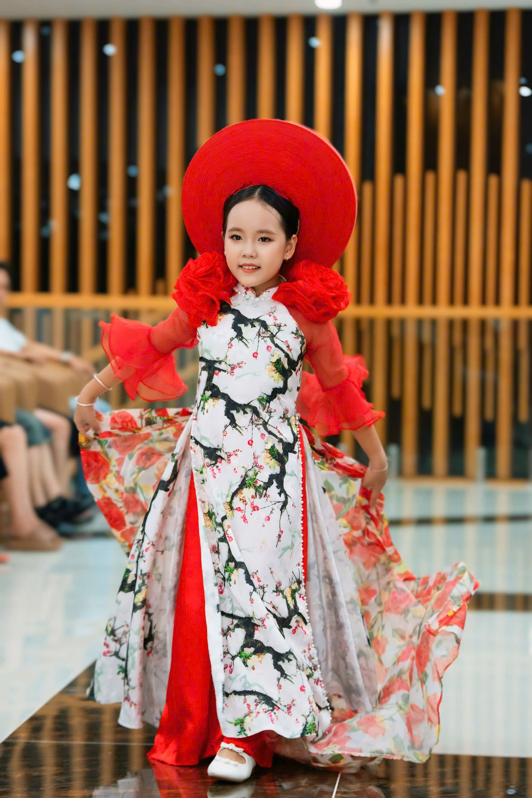 Sự kết hợp giữa vẻ đẹp truyền thống của áo dài và sự sáng tạo không ngừng của NTK Đinh Bách Đạt đã tạo nên một tác phẩm thời trang đầy màu sắc và cuốn hút. Mẫu áo dài mà Gia Hân trình diễn được thiết kế với những đường nét mềm mại và họa tiết tinh xảo, thể hiện sự kết hợp hoàn hảo giữa truyền thống và hiện đại. Chất liệu vải cao cấp cùng gam màu sắc hài hòa đã giúp tôn lên vóc dáng và nét đẹp của mình. Vũ Thảo Gia Hân, với bước đi catwalk tự tin và phong thái đáng yêu, đã thực sự làm sống động những thiết kế này, mang đến một làn gió mới cho làng thời trang Việt Nam.