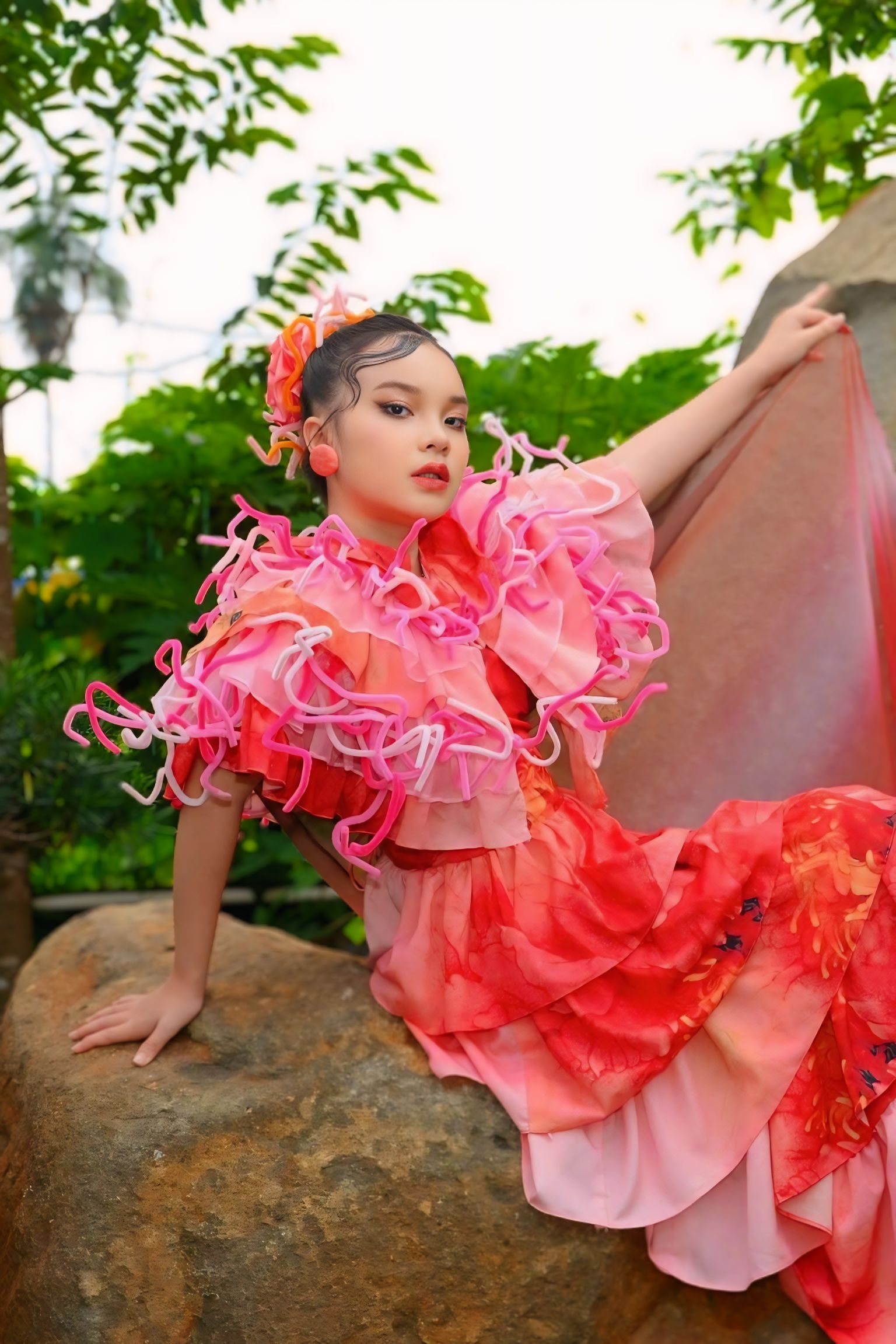 Dàn model Kid với số lượng hùng hậu 31 gương mặt đã phối hợp ăn ý để trình diễn sinh động, cuốn hút giữa bối cảnh thiên nhiên mùa hè tươi đẹp tại xã Bạch Đằng, làng thông minh của thành phố Tân Uyên. Trong đó, Hoàng Tú Anh Anh nổi bật với vẻ đẹp gương mặt, ánh mắt và trình diễn catwalk chuyên nghiệp. Nhẹ nhàng trong tà áo dài, cá tính trong trang phục dạ hội, Hoàng Tú Anh đã hoàn toàn làm chủ các bước catwalk với thần thái tự tin, những cú xoay người tạo dáng uyển tạo được cảm xúc trước ống kính ghi hình.